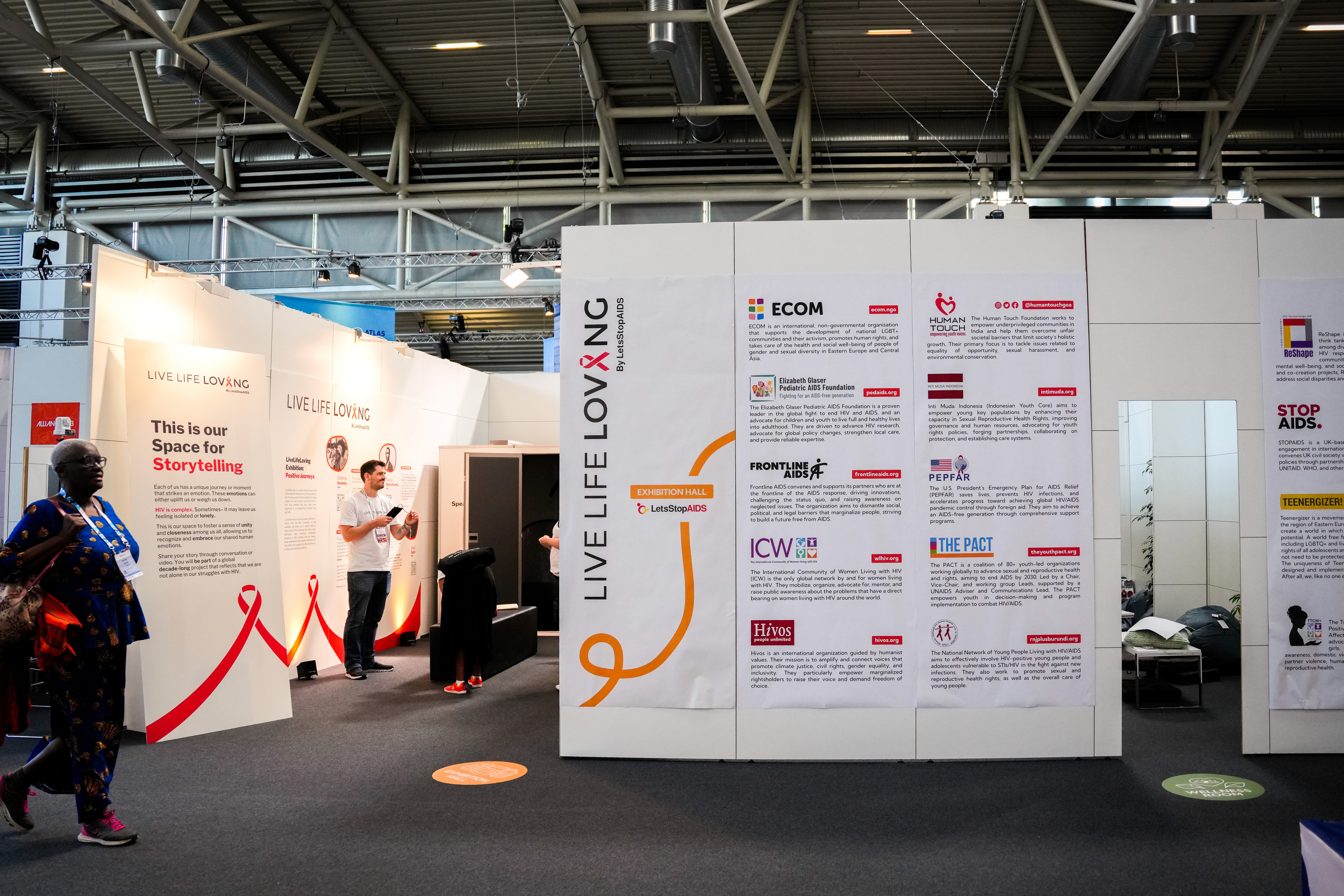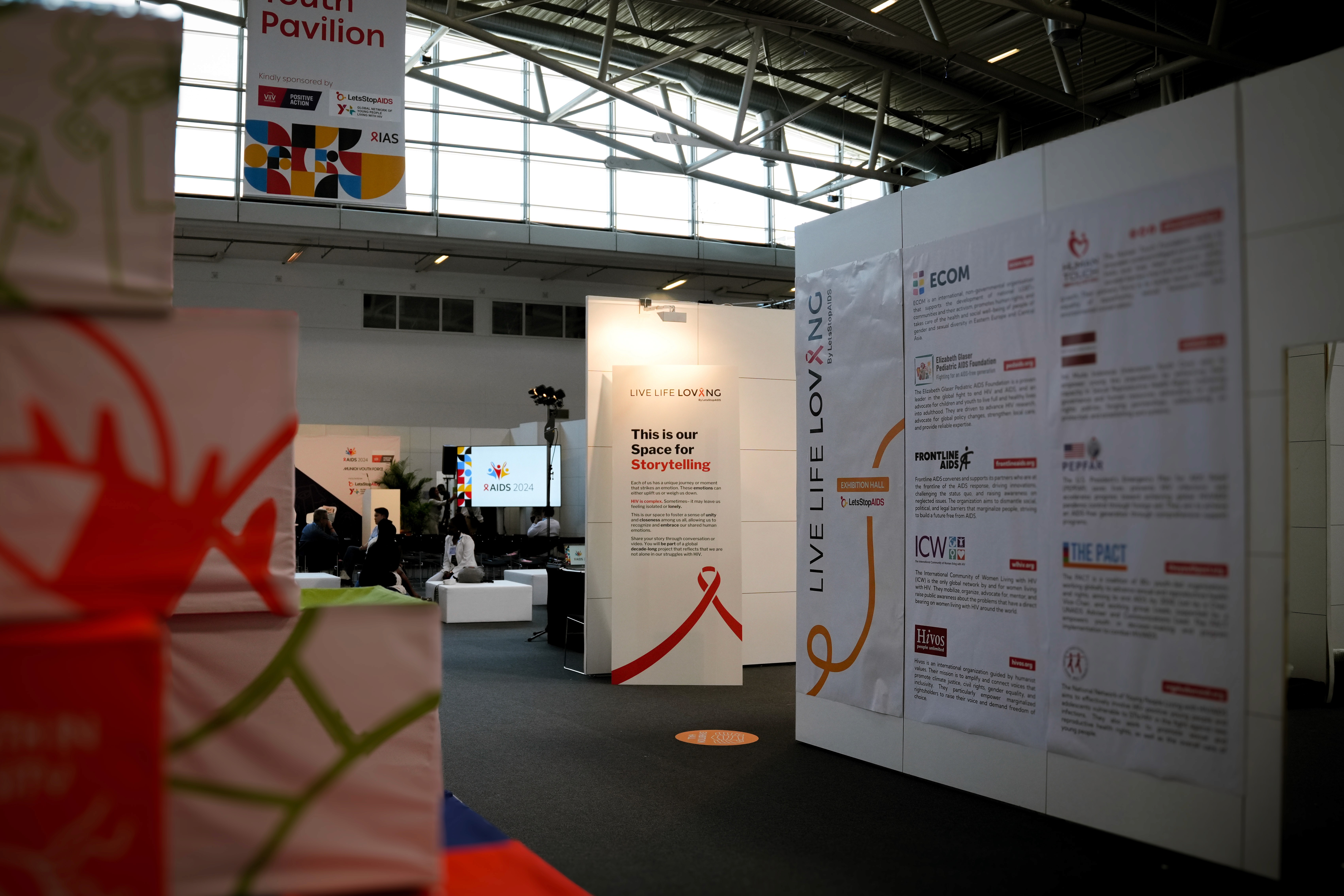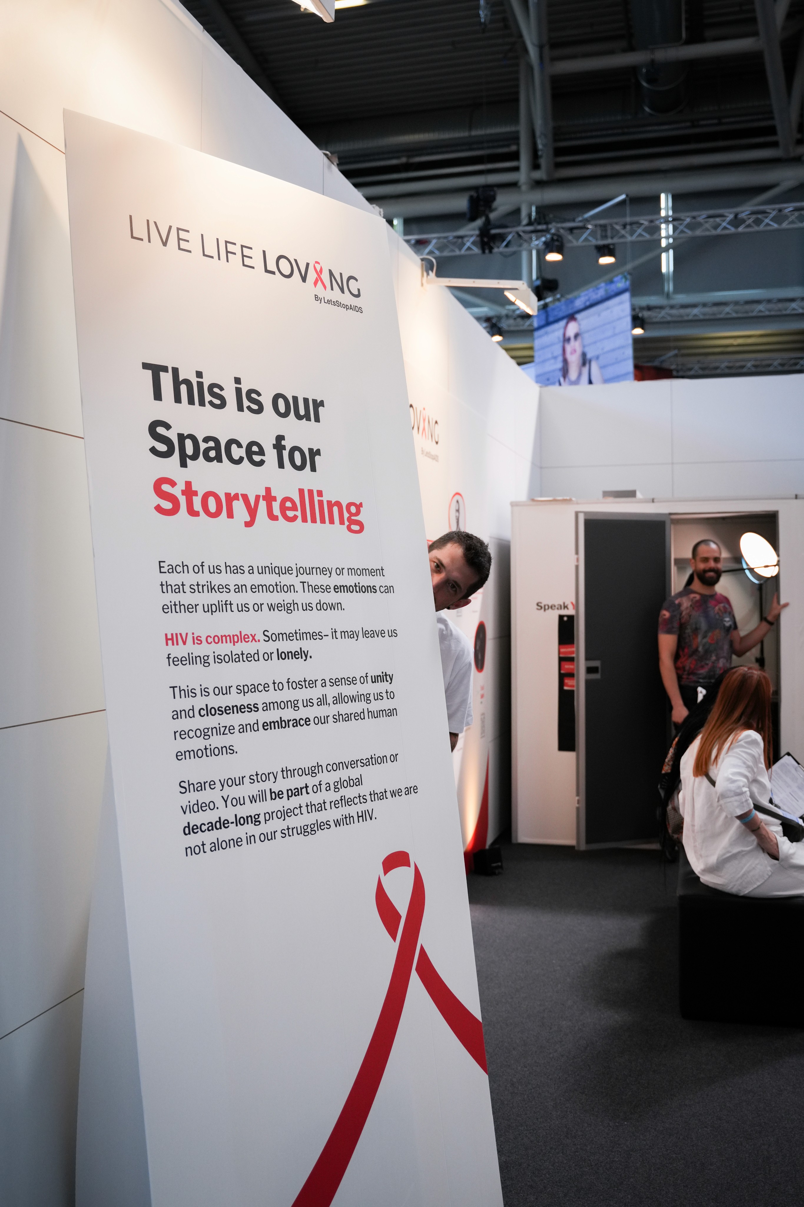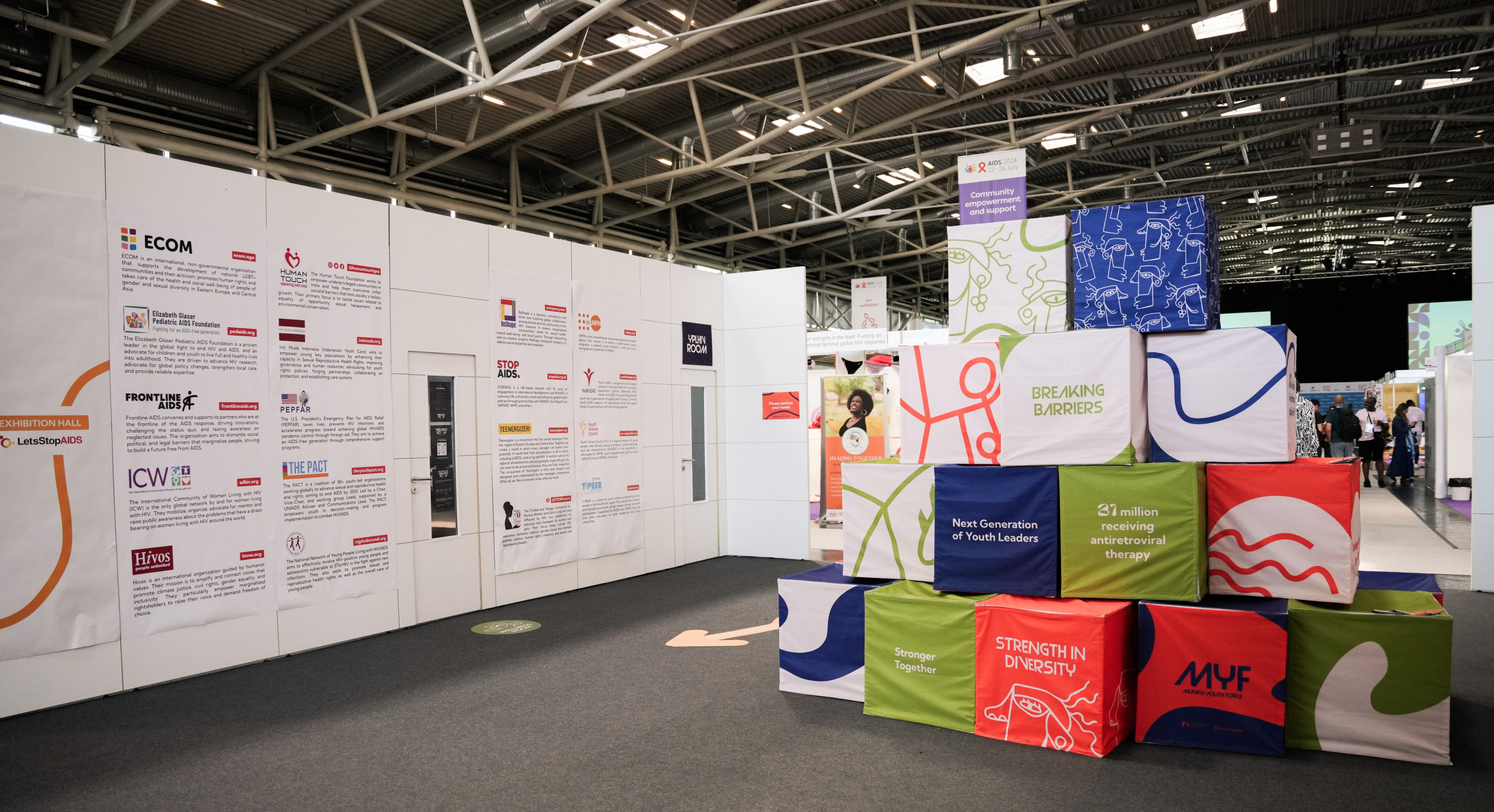 Exhibition areas for Y+ Global and LetsStopAIDS were designed with their unique goals in mind: Y+ Global hosted a podcast booth focused on youth dialogue, while LetsStopAIDS curated a museum-style exhibition and a video booth for youth voices to be recorded and shared.
