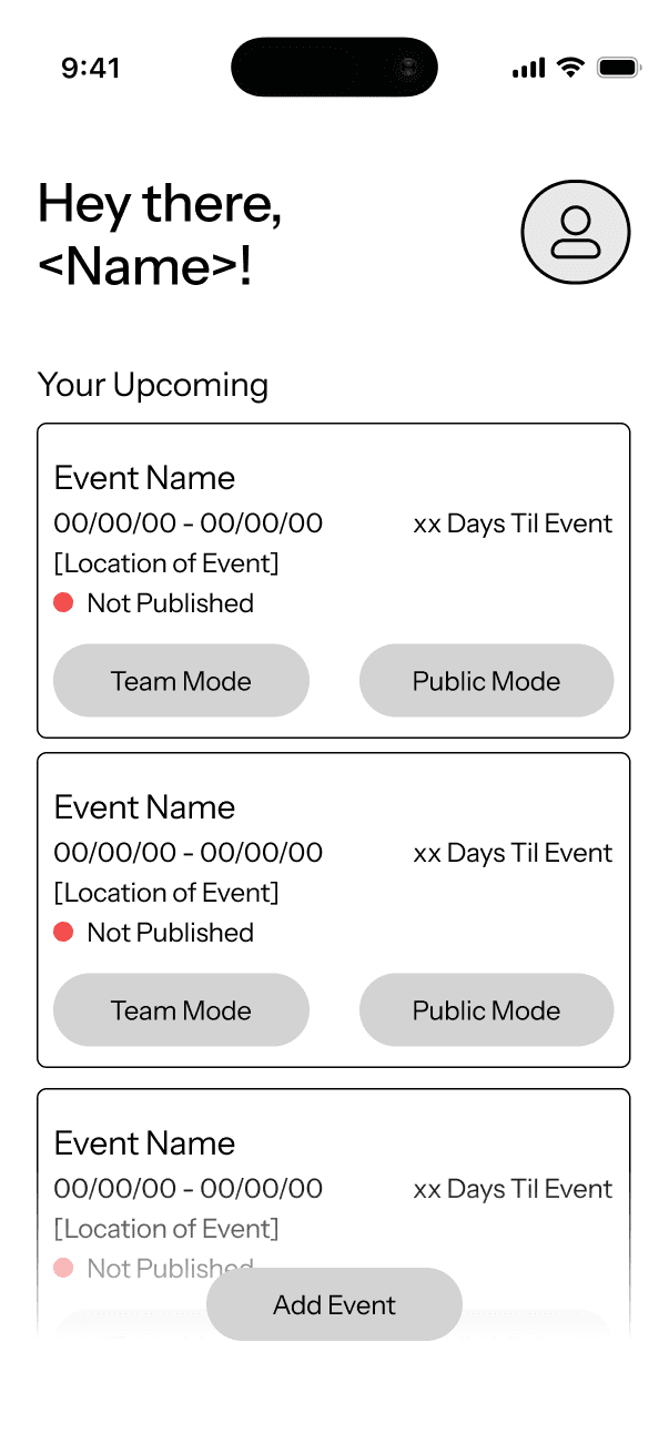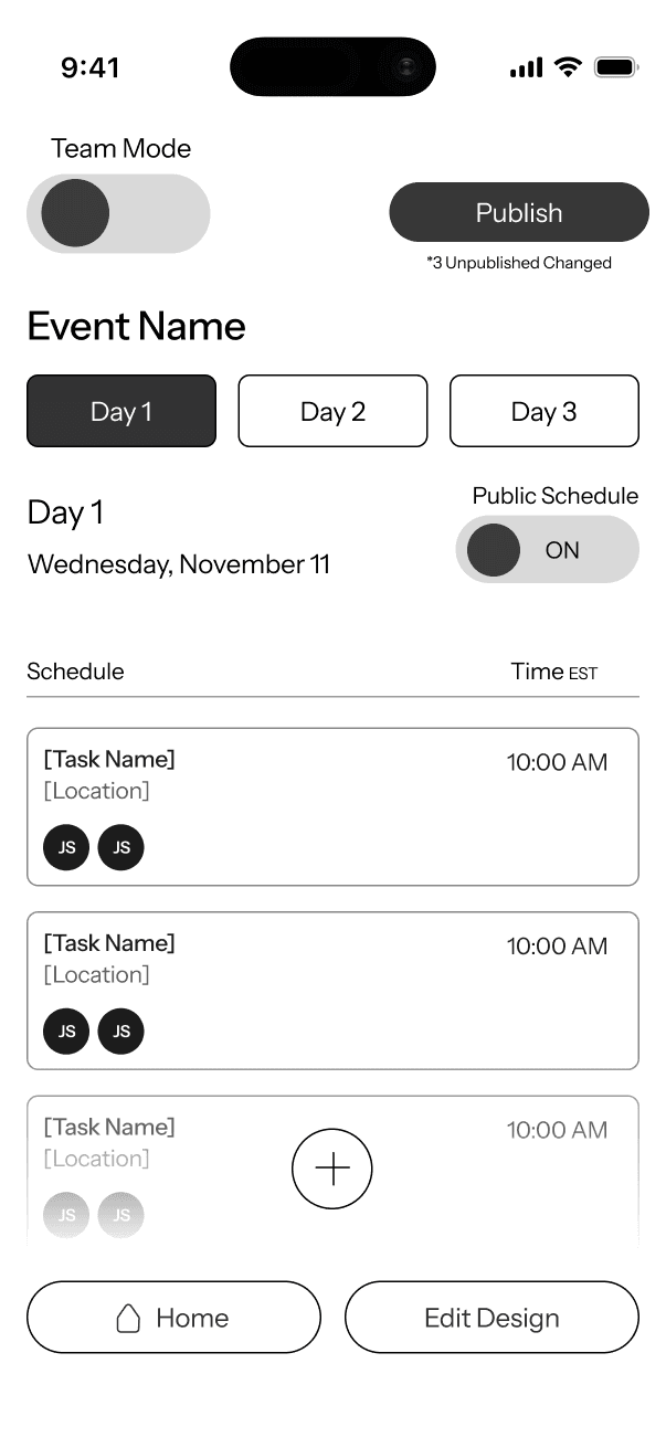The challenge was to design a tool that simplifies the complexities of event planning and centralizes simplicity, providing all the necessary features for team management while effectively communicating that with the public in a timely manner.