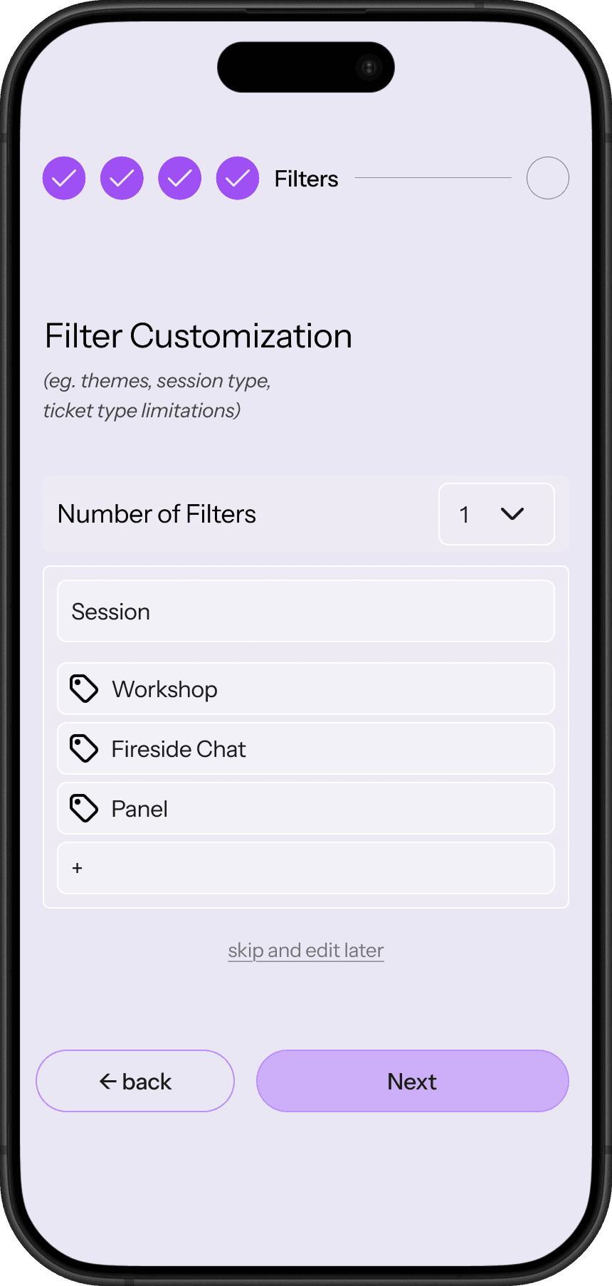 I experimented with different ways to visualize filters, and visualize how attendees would be able to navigate on the platform.
