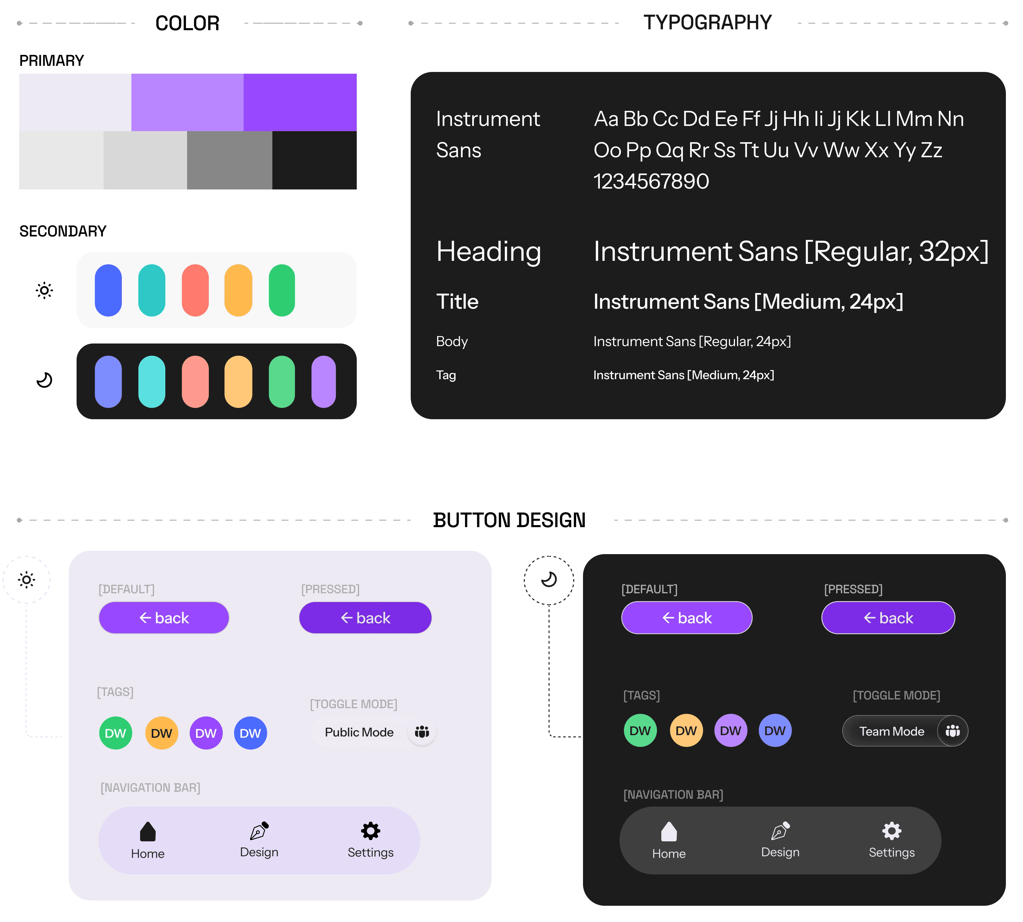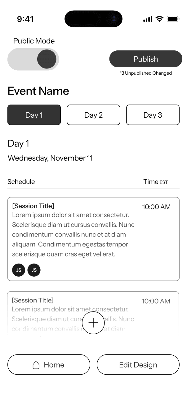 The UI tone is designed to feel confident, calm, and operational, prioritizing readability and hierarchy. A combination of light mode and dark mode is used strategically to help distinguish between different contexts of use. Light mode supports public-facing and attendee experiences, while dark mode is used for internal team workflows.