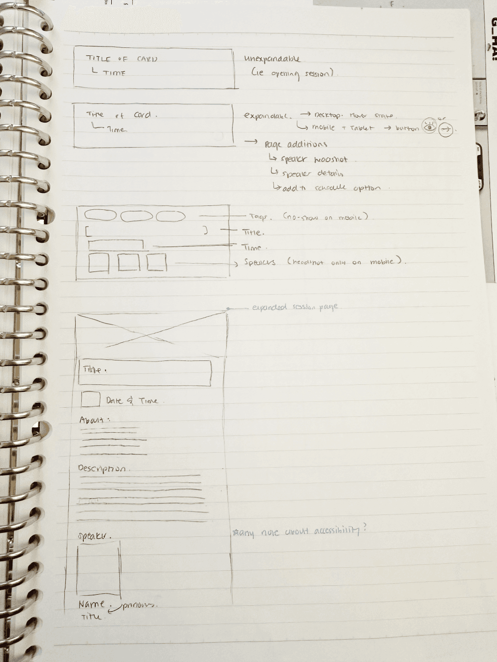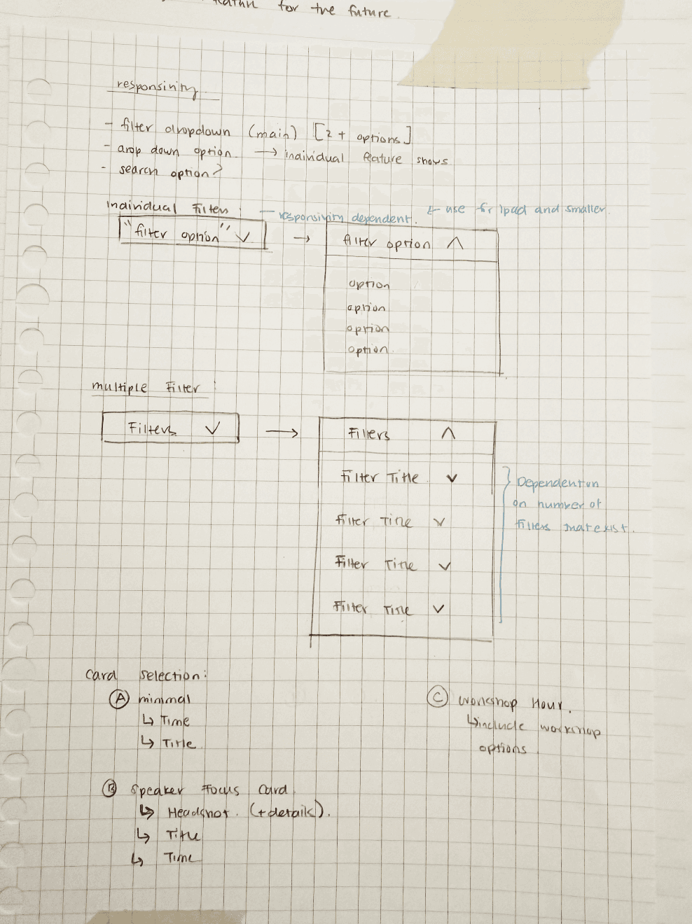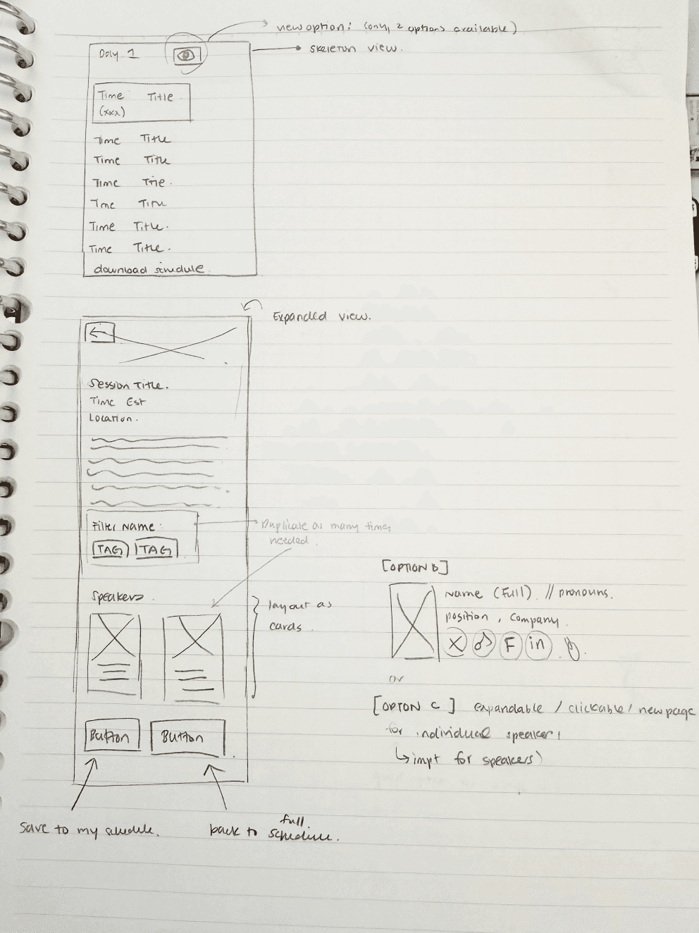 Afterwards I set to explore how I could filter and create custom schedules, and started to storyboard how the schedule would look like to attendees.