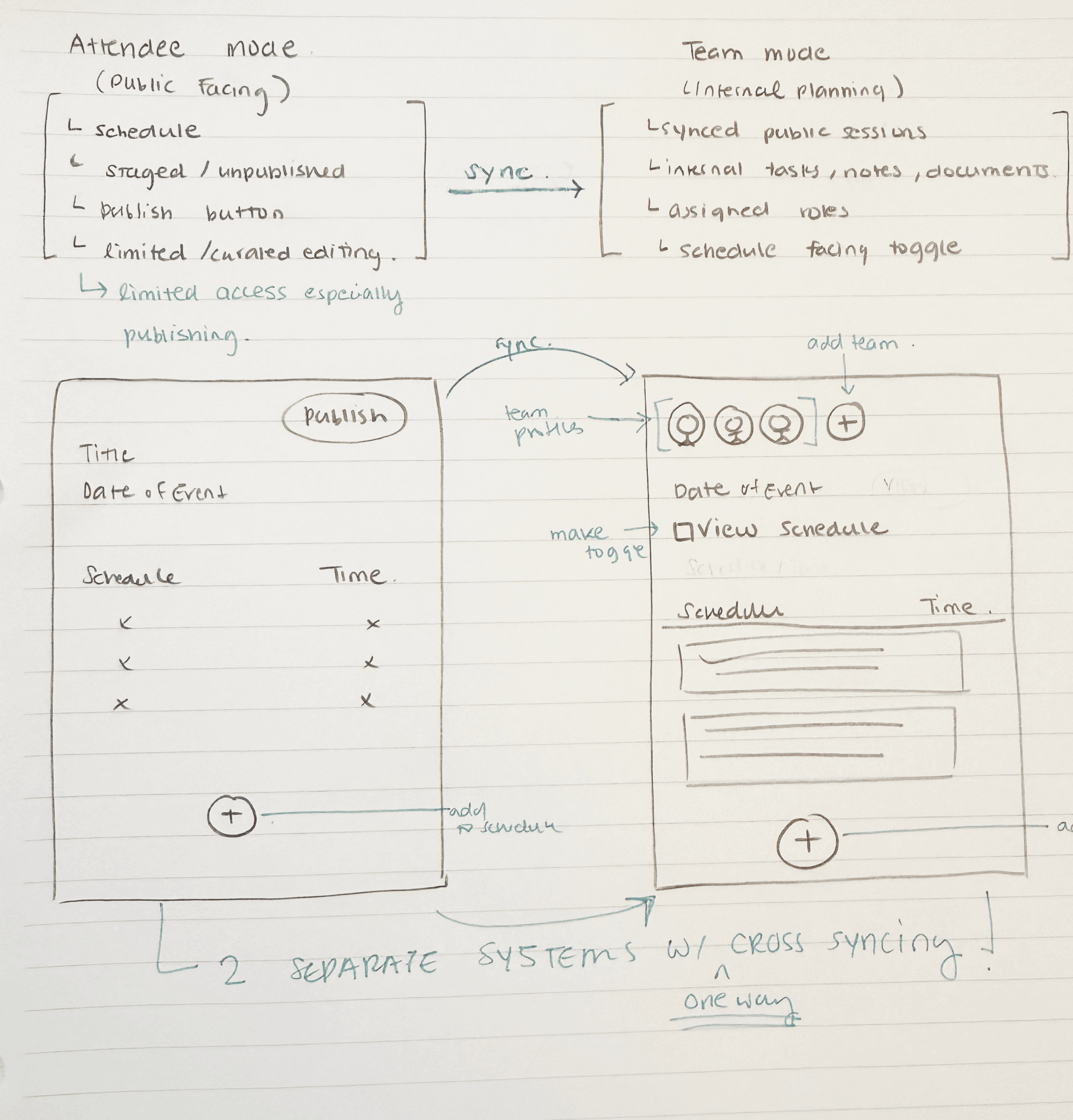 The concept of cross-mode syncing emerged as a way to separate internal planning from public-facing experiences while keeping them connected through a shared system.