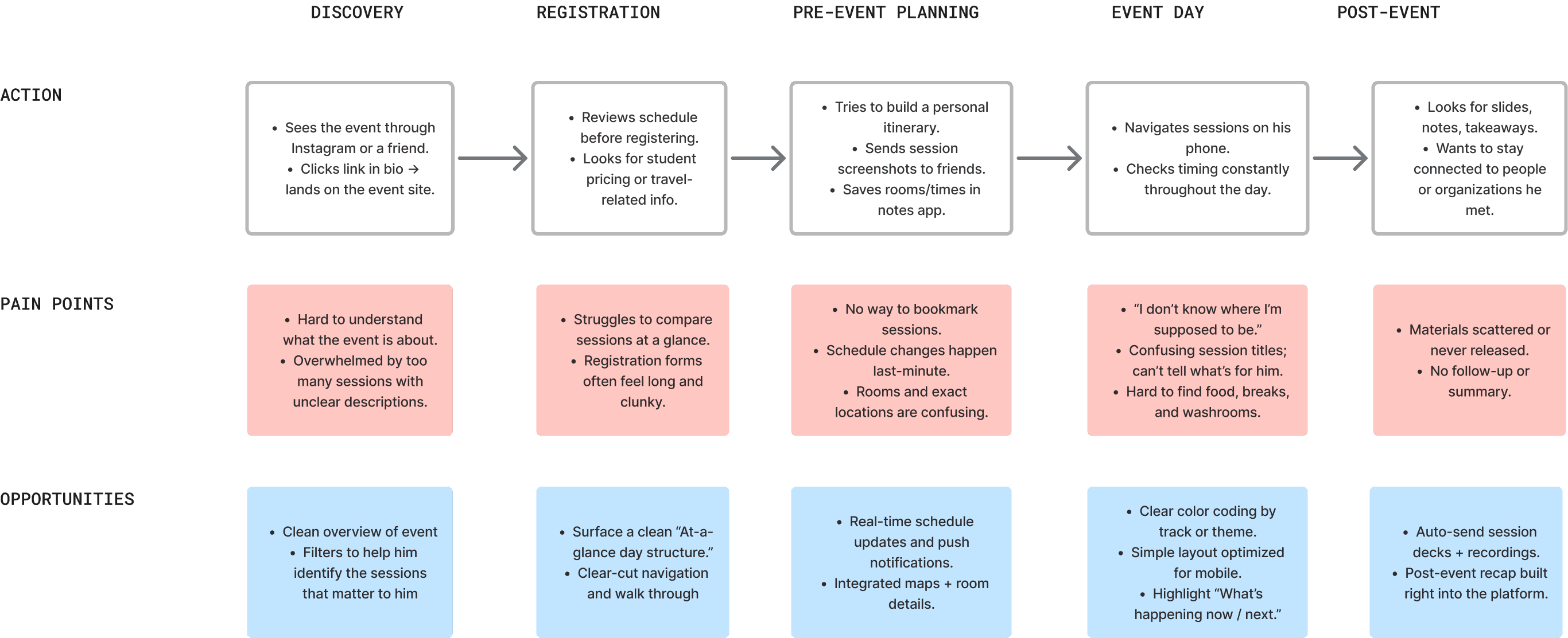 Then spoke with event attendees to understand how they interpret schedules, what confuses them, and what makes them feel prepared throughout an event.