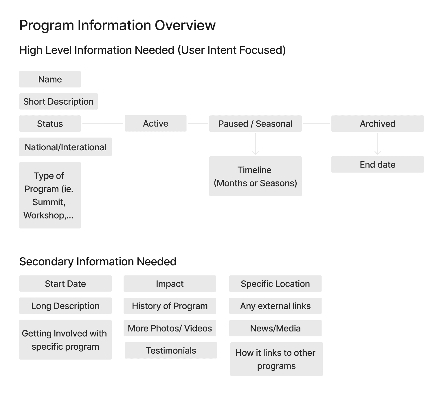 Since the primary pain point was users’ uncertainty about the status of programs, the top level of information architecture prioritized clearly indicating which programs were currently available. This allowed users to quickly identify relevant offerings without needing to navigate through outdated or inactive content.