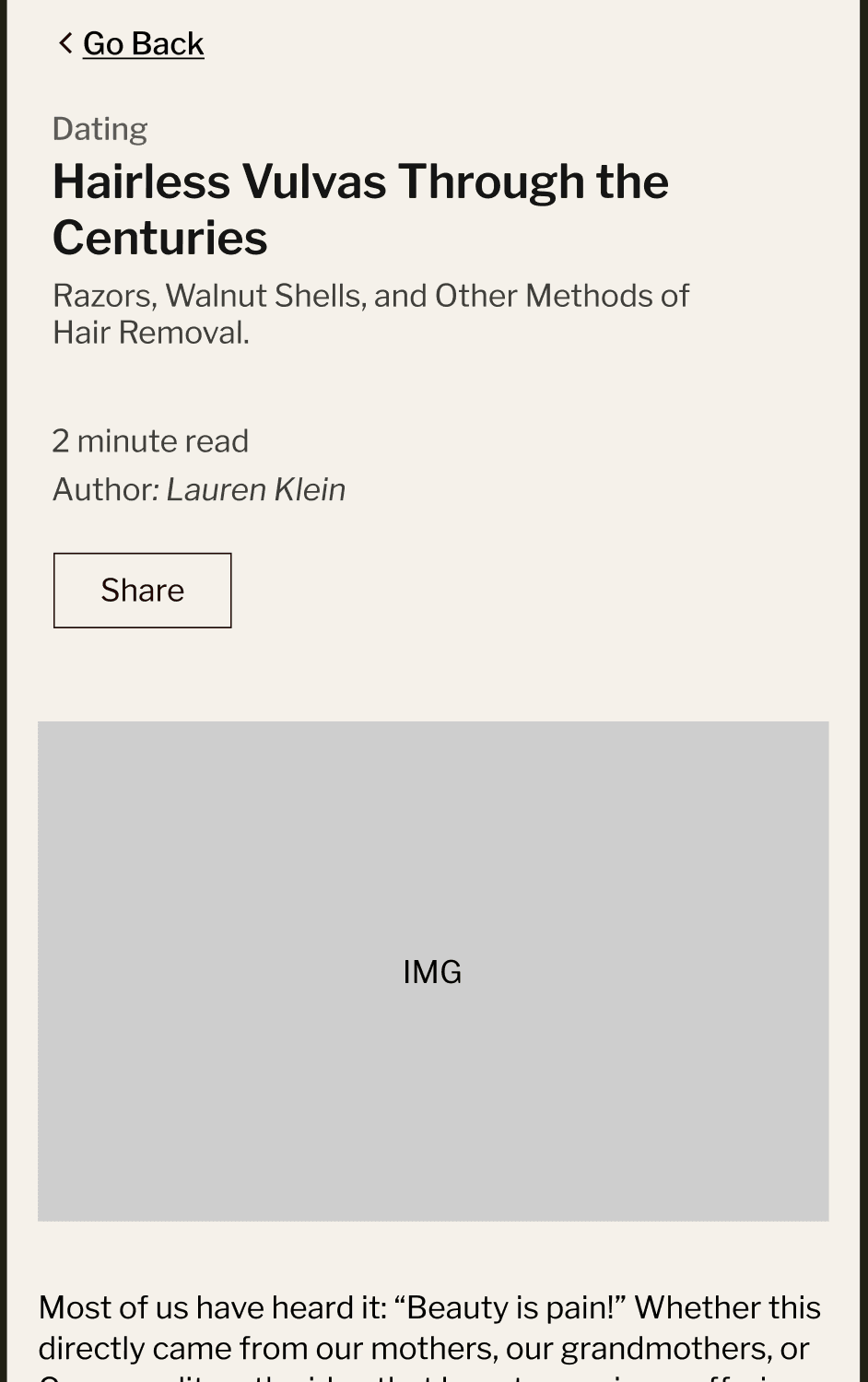 Through a focus group we asked users what kind of articles they would want to see if they were to go platform that talks about sexual wellness, relationships, and more.