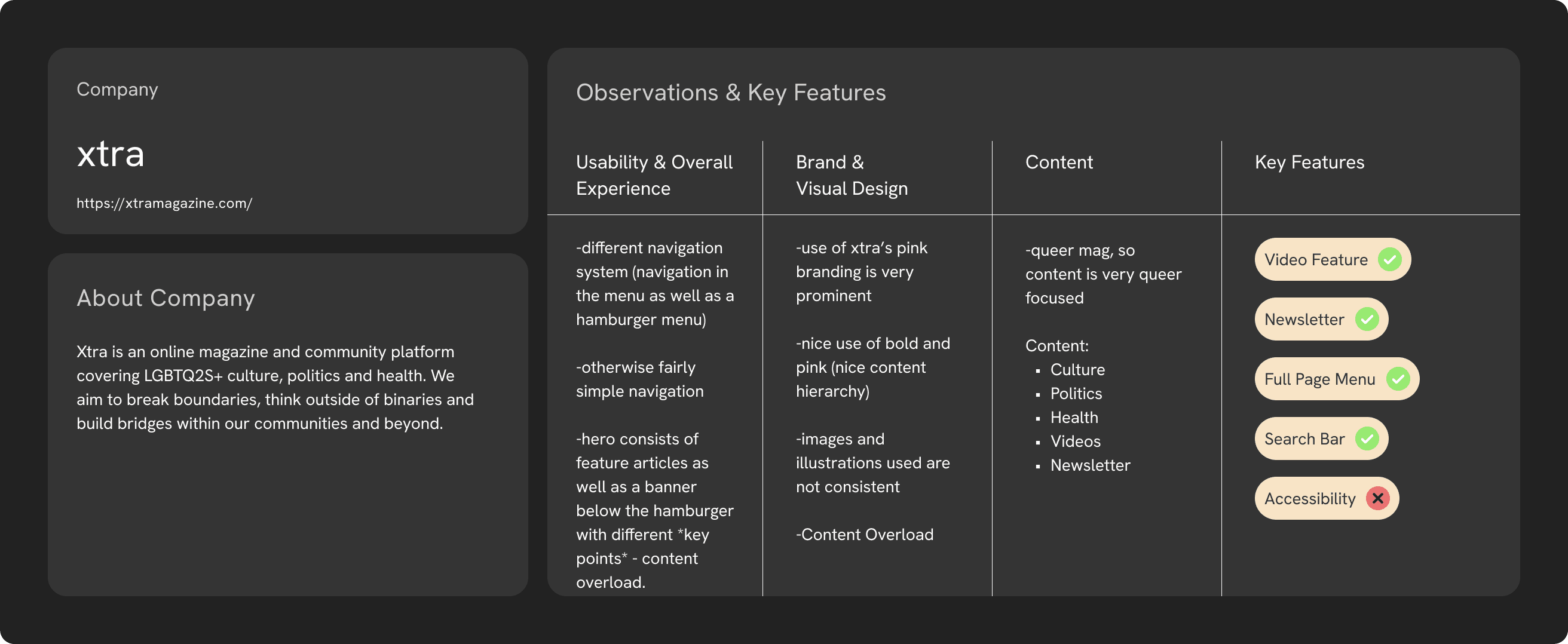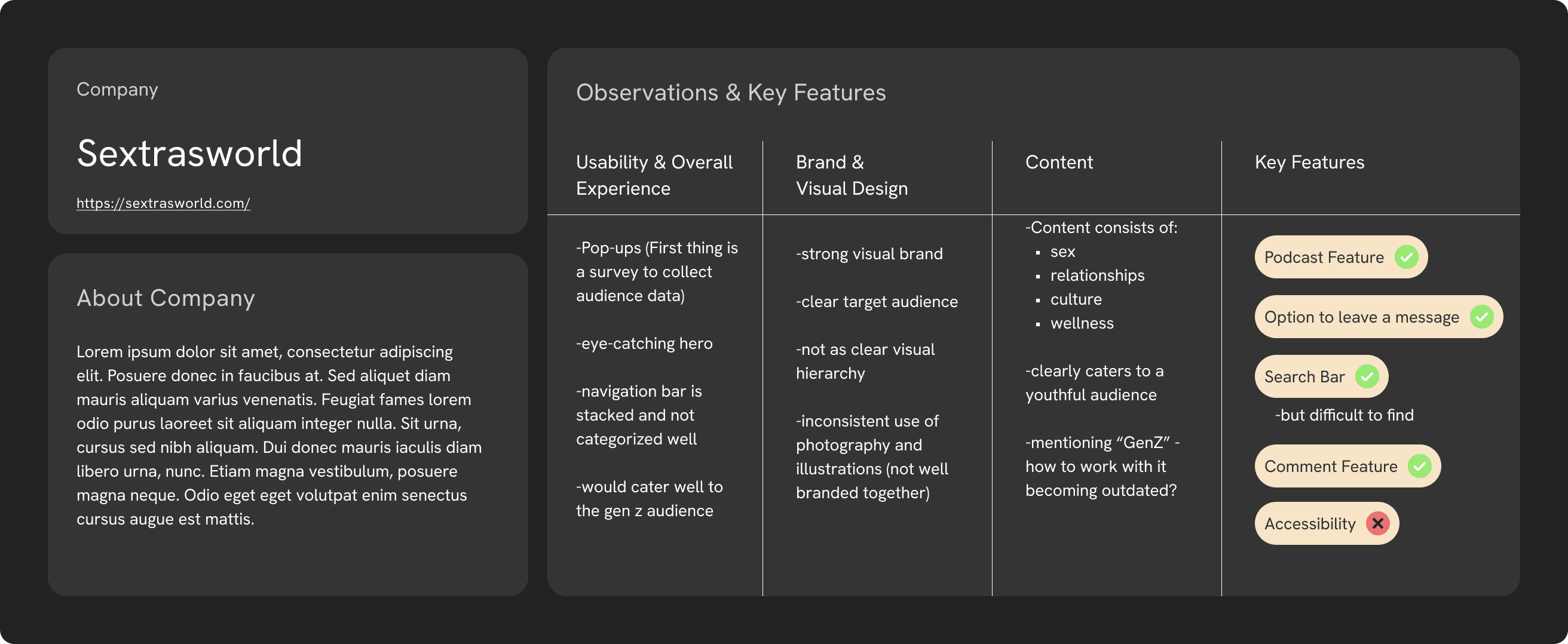 After conducting our competitive analysis, we gathered some key features found from our competitors and ones we gathered were missing.