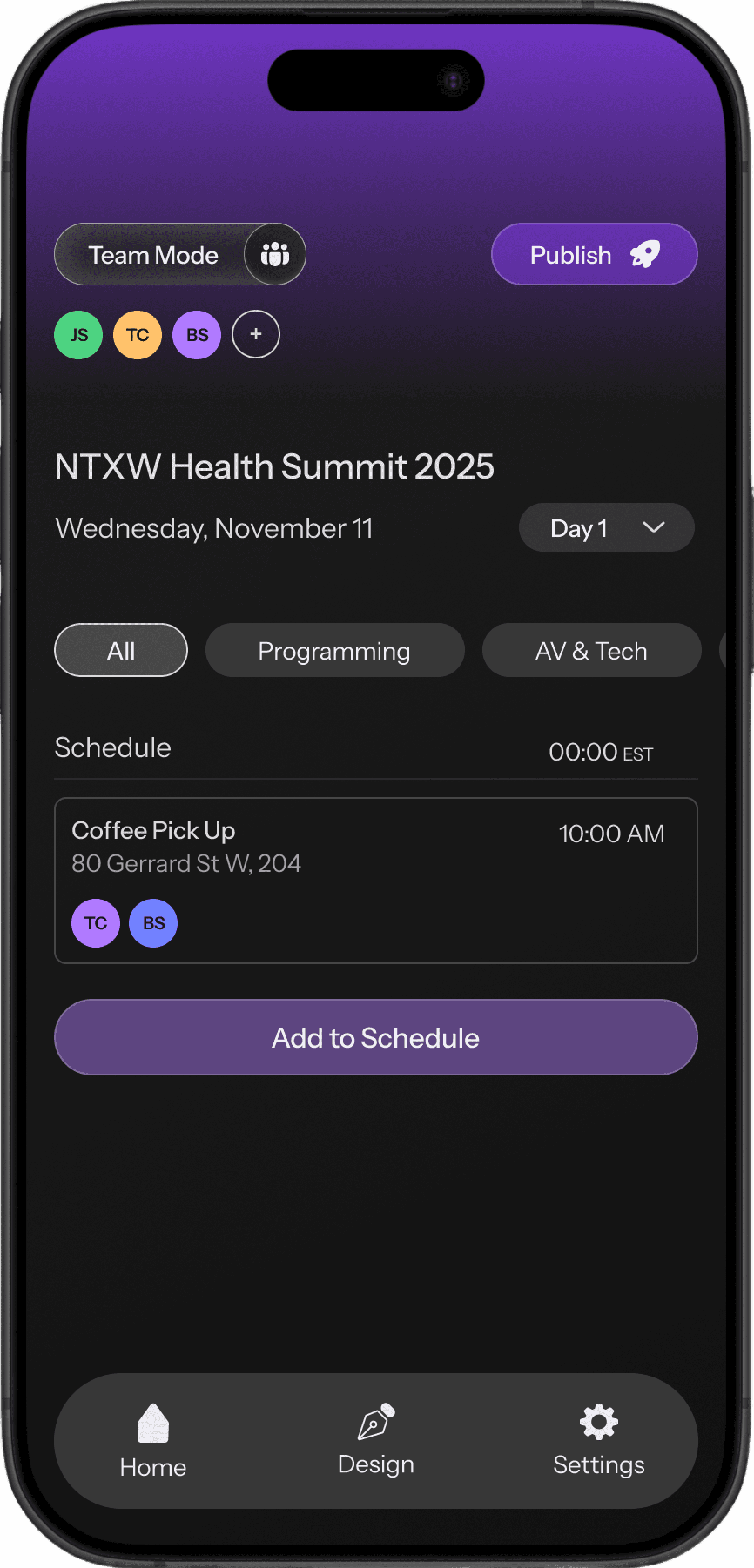 A hybrid itinerary system designed to connect planners and attendees: delivering clear, personalized event schedules.